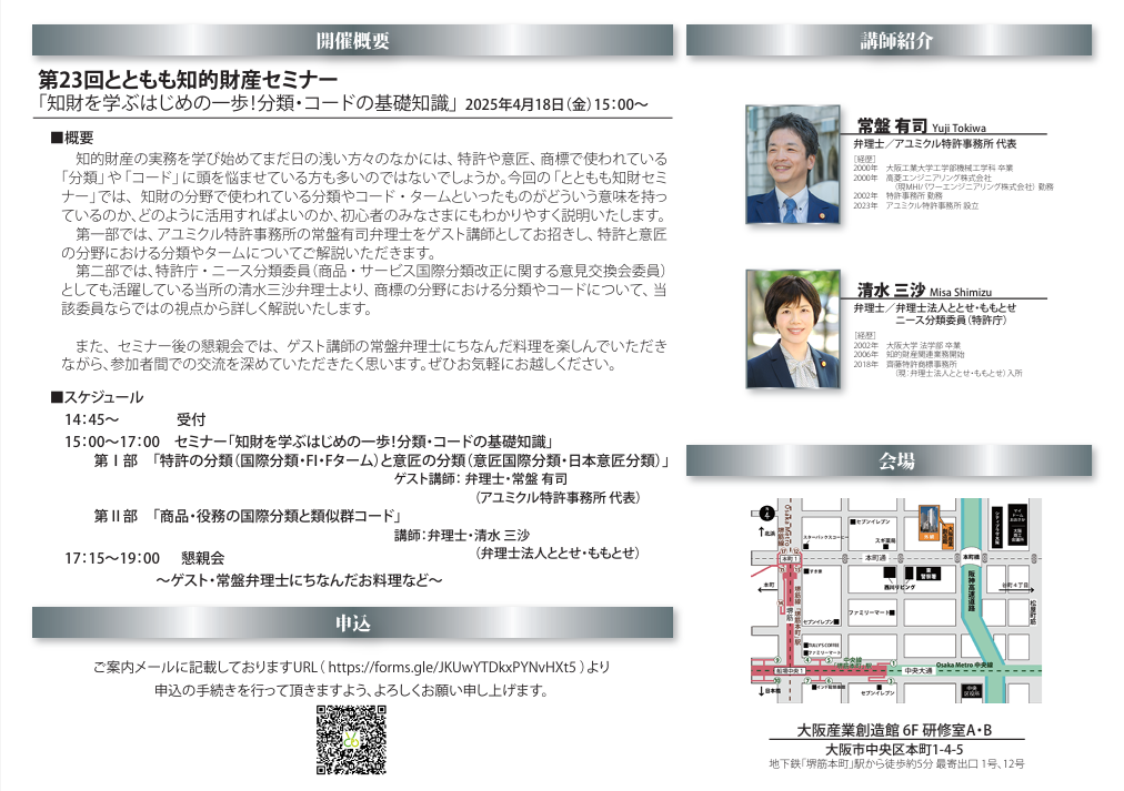 第23回 とともも知財セミナー開催のご案内